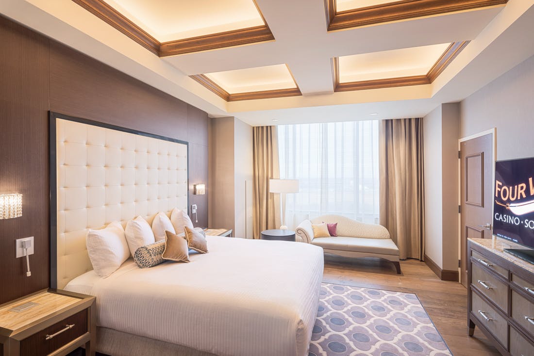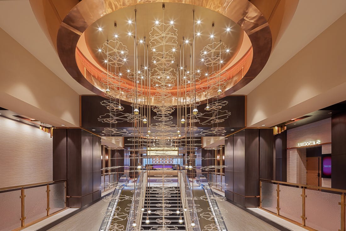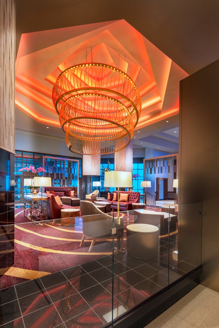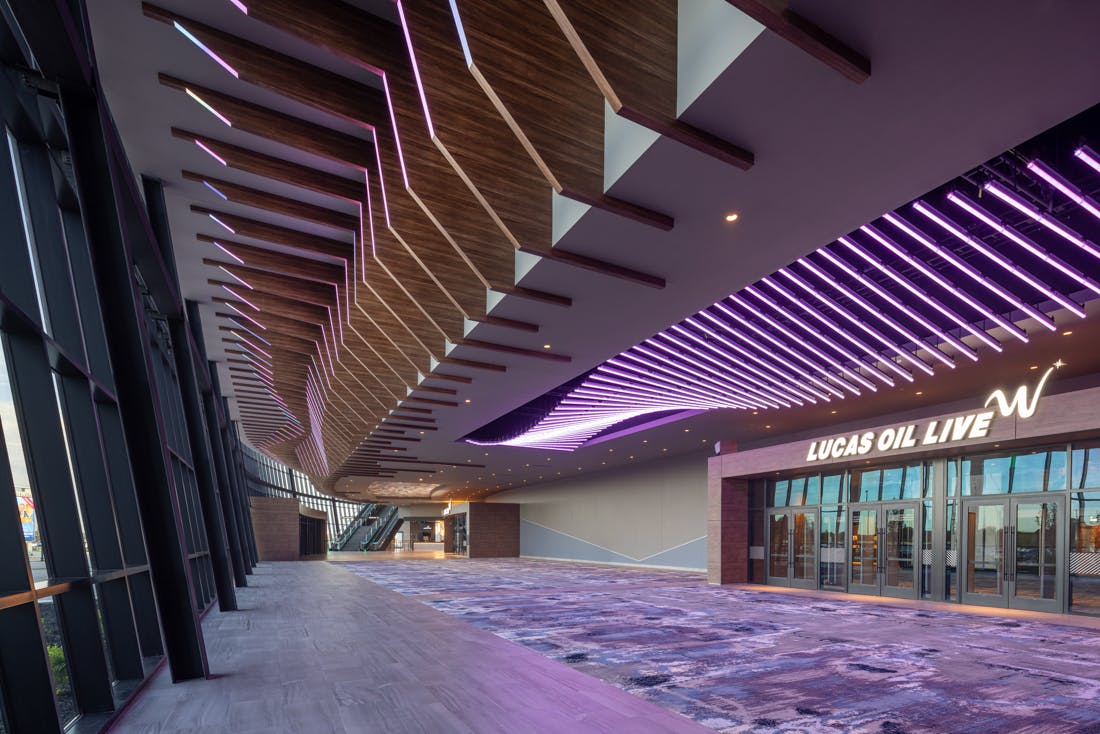 The Four Winds South Bend Casino has undergone an incredible expansion, adding new high-end hotel, spa, and event amenities to its popular casino to offer guests an even more spectacular and inclusive entertainment experience.Soaring 23-stories above South Bend, the visually stunning, copper-colored glass hotel tower serves as a beacon for the new resort. Reflecting the beauty of its natural surroundings, the dramatically tinted glass tower transforms into an iconic glowing structure as the sun sets, featuring an LED light ribbon spanning the vertical elevation and specialty mullion extensions that highlight each floor of the tower at night. Inside the luxurious Four Winds casino resort expansion is a 317-room hotel tower with 82 high-end suites, the lavish Cedar Spa, the vibrant Ribbon Town Conference and Event Center, and an outdoor rooftop pool deck set on the third floor adjacent to the hotel’s main food and beverage venue, The Edgewater Café.
