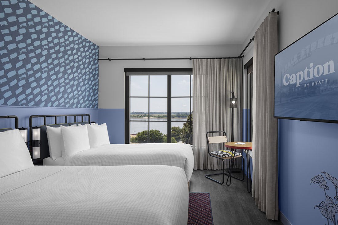 Not just in the community, but of the community. That is Caption by Hyatt’s design promise; and the first ever Caption by Hyatt branded hotel, built in Memphis, Tennessee, fully delivers on that promise. The upscale, select-service lifestyle brand introduces a dynamic hospitality experience with an unmistakable neighborhood feel. Located at famed Beale Street in downtown Memphis, the Caption by Hyatt Beale Street Memphis blends seamlessly into the vibrant urban environment. Housed in the historic façade of the Wm. C. Ellis & Sons Ironworks and Machine Shop building, the 136-room hotel tower rises above, offering guests endless views of the Memphis skyline and the Mississippi River. Reflective of the brand’s eclectic contemporary-meets-urban industrial aesthetic, the hotel features open light-filled spaces with a strong industrial flare. The property combines a layering of historic structural elements like exposed brick and original wooden and metal beams, vibrant colors, textures, and hand-painted murals that nod to the storied city it calls home.